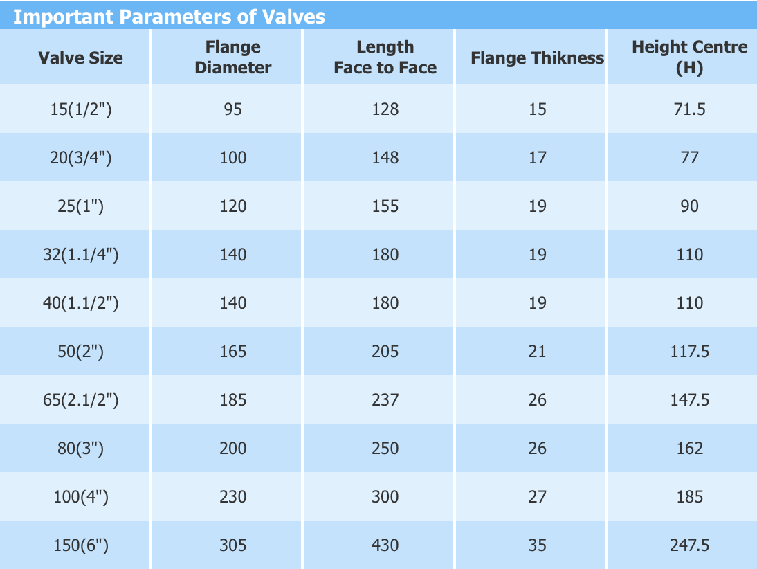 1. Available in Flange Type in 15 mm to 150 mm and in Screw Type in 15 mm to 100 mm.